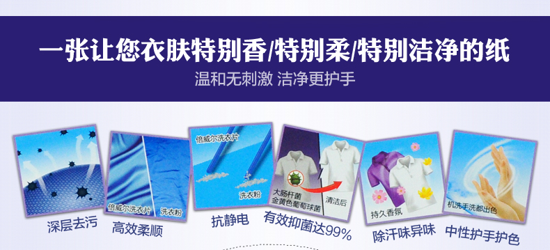 一、洗衣片安全、健康、環(huán)保:不含磷、熒光劑等有害物質(zhì),嬰幼兒衣物可放心使用。